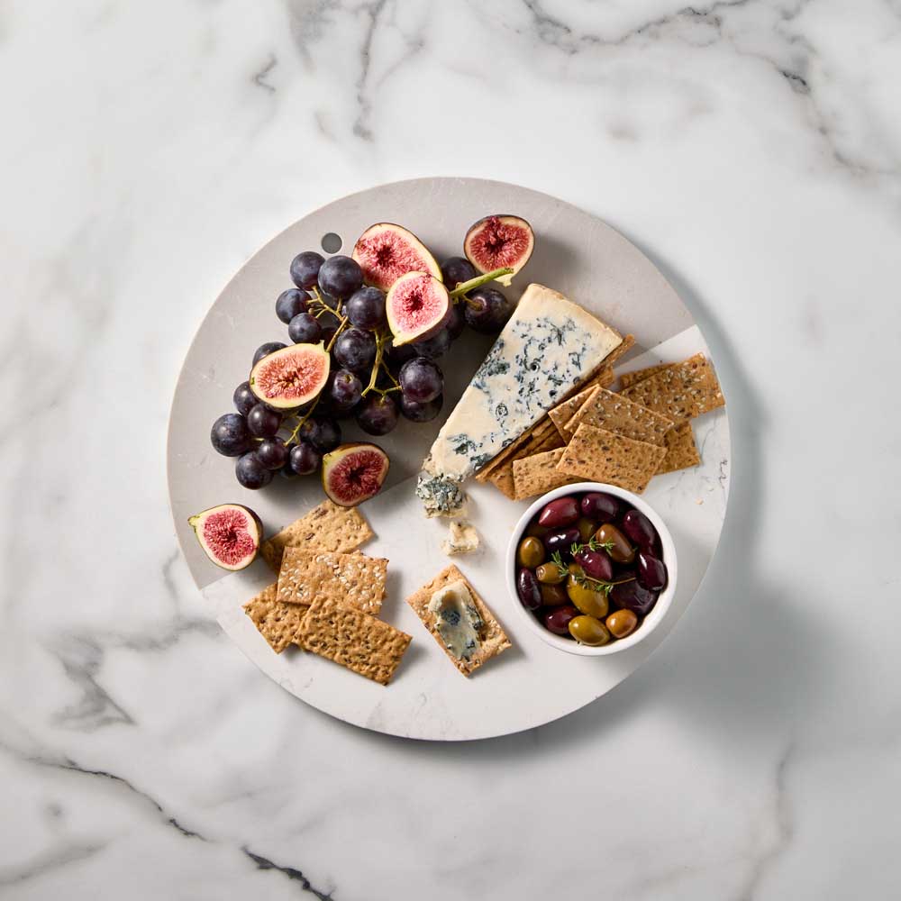 Ideal for dining at home, this elegant serving tray is valued for its natural durability and beauty, which provides an appealing background for your choice of cheeses, cold meats, fresh fruit and other delicacies. Exquisitely crafted using high quality food grade faux marble for long lasting durability and longevity, combined with a split tone marble look for an elevated contemporary aesthetic. Each piece boasts individuality and refined style with a minimalistic design and natural contrasting veins throughout the marble. Packed for gifting, the Alex Liddy® Round Serving Board is an excellent gift for birthdays, and other events. Complete the look by combining with the co-ordinating Alex Liddy® Slate & Co collection.