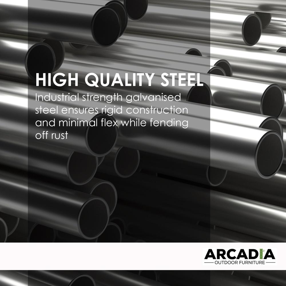 Enjoy comfort and luxury with this Arcadia 3 Piece Rattan Patio Set. This 3-piece chair and table set is the perfect size for a balcony, big or small to enjoy a hot cup of coffee in the warm morning sun. Made from long-lasting PE rattan along with industrial strength galvanized steel, this set will stand the test of time as it handles any weather that nature can throw at it and still look good. The set also features two extra thick 5cm cushions that are waterproof and are easily removable. The rattan finish ensures a soft and comfortable seat without the need for a cushion and the compact size makes it perfect for apartment balconies and small courtyards.