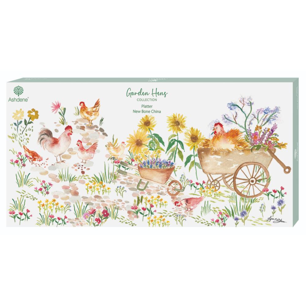 Bring charm to your home with the Ashdene Garden Hen Platter, featuring watercolour designs by Ashdene's in-house artist. Delight in hens enjoying their best life amid lush gardens, vibrant flowers, a greenhouse, and charming gardening tools. Perfect for gardeners and hen lovers alike!