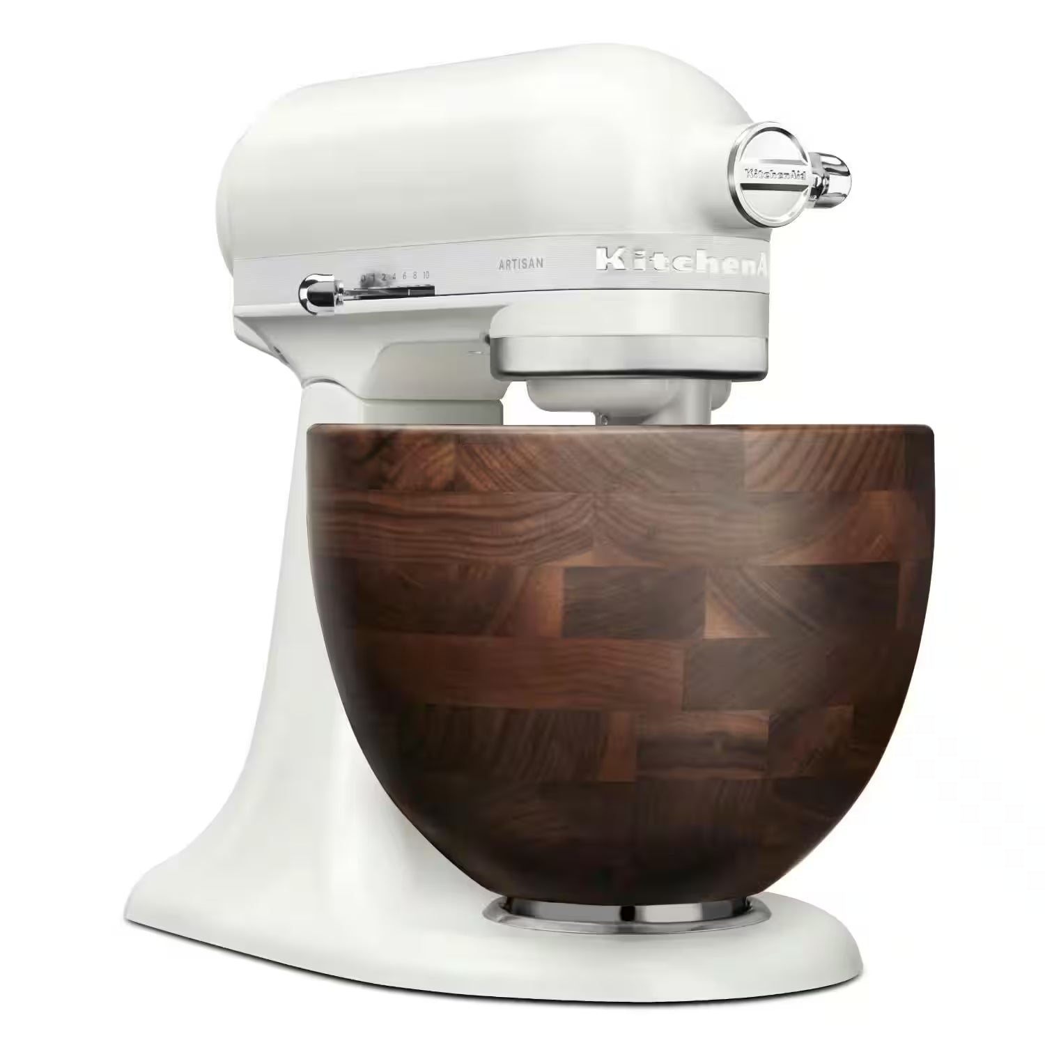 KitchenAid Artisan Stand Mixer Porcelain White With Walnut Wood Bowl