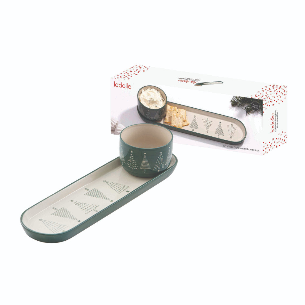 Ladelle Christmas Evergreen Plate With Bowl