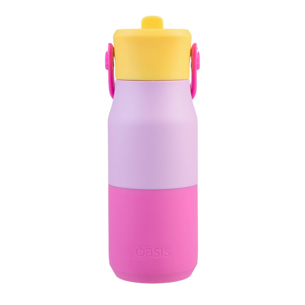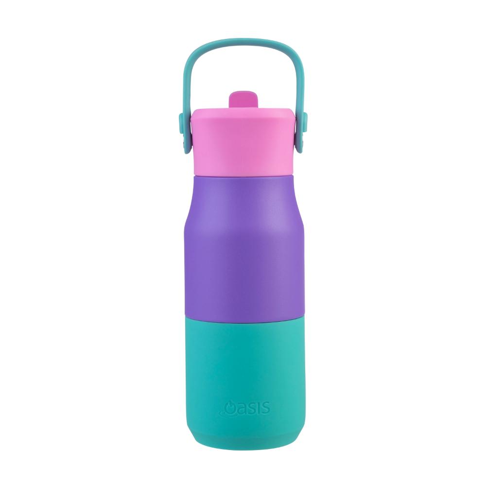 Stay cool and sip in style with the oasis stainless steel double wall insulated junior drink bottle. Designed for younger sippers and built for everyday adventures, this 400ml bottle keeps drinks cold for up to 12 hours with its vacuum-insulated 18/8 stainless steel body. The flip-up sipper spout ensures easy, mess-free hydration, while the detachable handle allows for convenient carrying or attachment to a bag. Finished with a durable powdercoat and a built-in silicone bumper for added protection, it’s a vibrant and practical choice for active kids. For safety, not recommended for hot liquids.