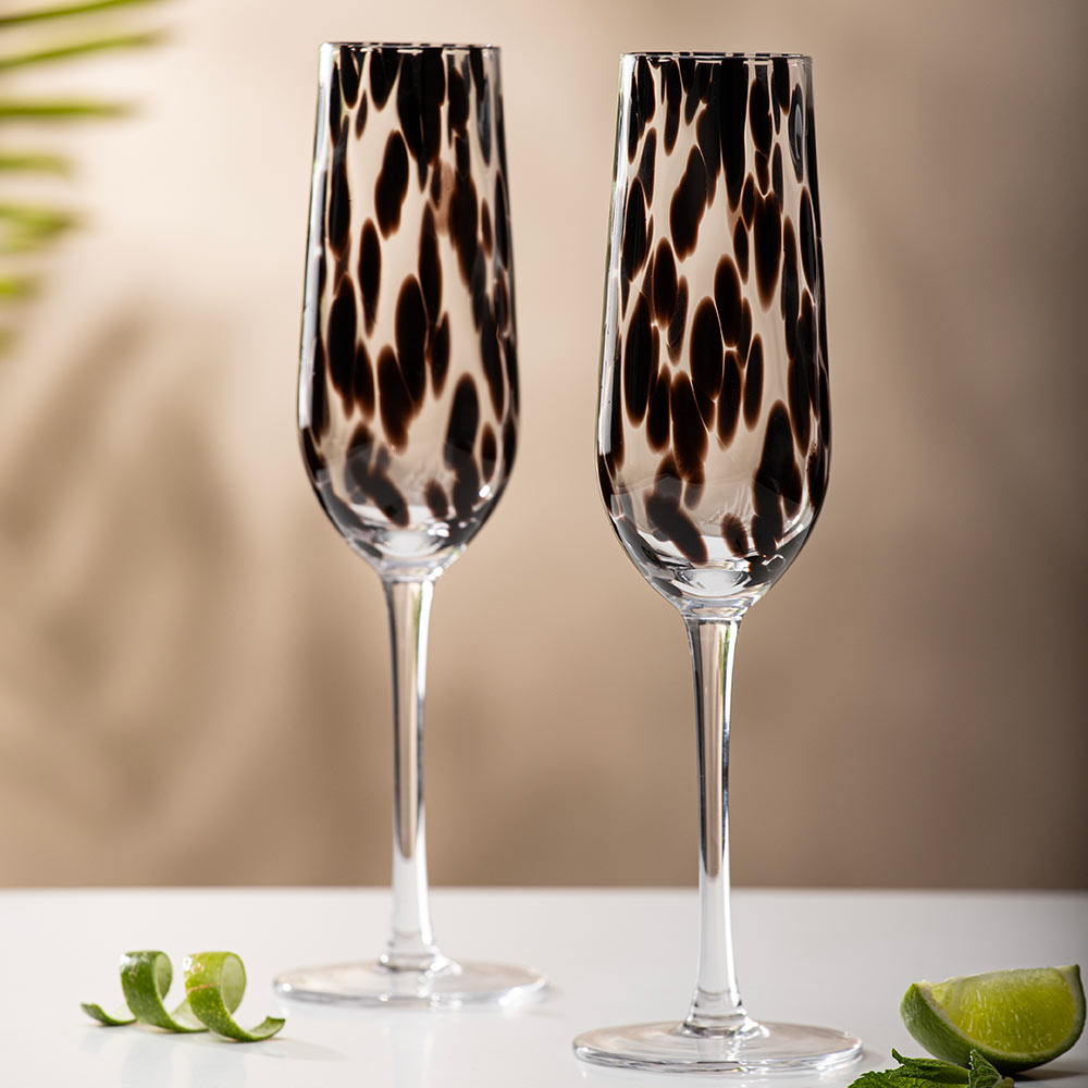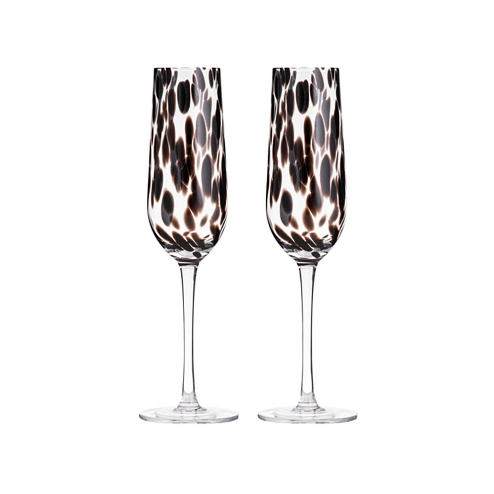 Boost your entertaining status with the Tempa Selena Set of 2 Champagne Glasses. The Selena Collection is a sophisticated ensemble that will elevate your next event to new heights of elegance and refinement. The black dot design bestows your glassware with a unique character that will surely captivate the attention of your guests. Made of high-quality glass, with each piece carefully mouth-blown, creates individuality to each piece. Presented beautifully boxed, the Tempa Selena Set of 2 Champagne Glasses makes a wonderful gift for housewarmings, birthdays, and other special occasions. Complete the look with the coordinating Tempa collection.